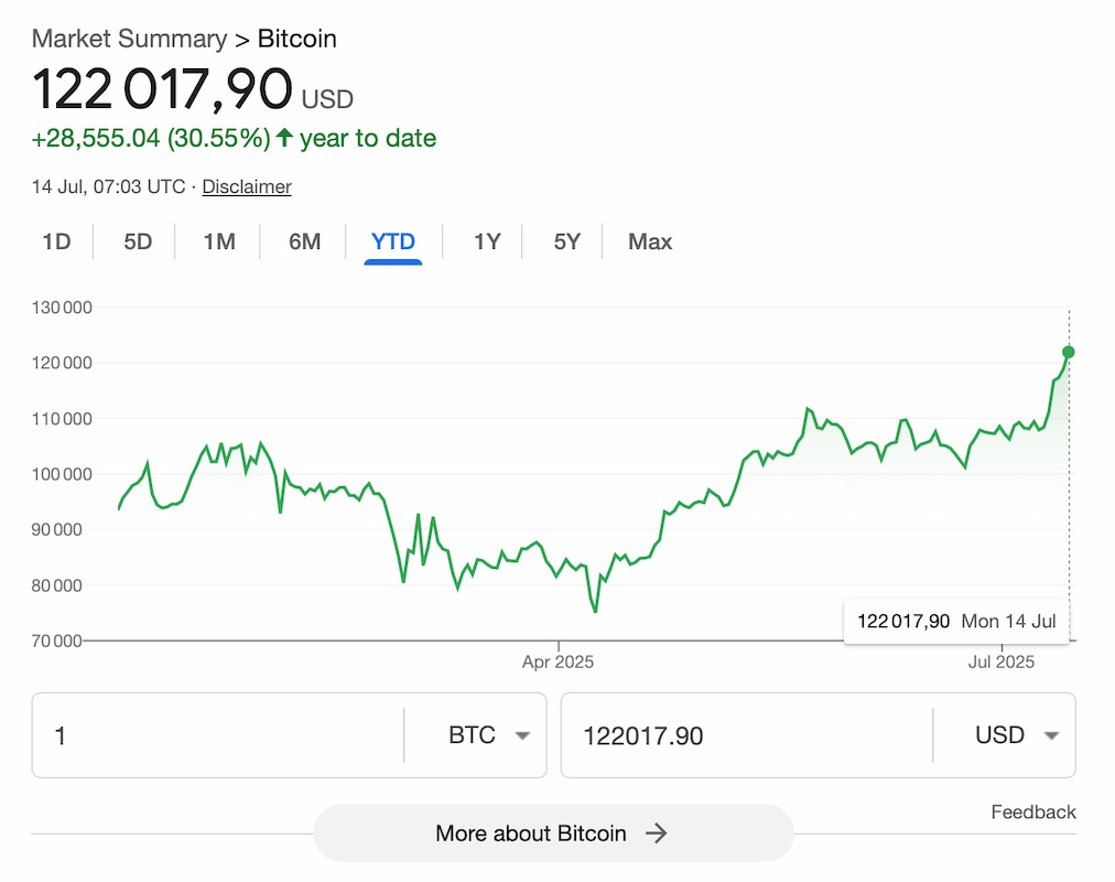 Franchement, à ce niveau, on n’est plus dans une simple tendance haussière. Les ETF spot aspirent toute l’offre, les institutionnels sont à l’achat non-stop, et les signaux politiques aux US sont ultra-positifs. Le marché est en train de recaler le prix du BTC, comme si les 100k étaient le nouveau plancher. Bien sûr qu’il y aura des prises de bénéfices, mais perso, je vois mal un vrai retournement tant que le flux reste aussi fort. Acheter maintenant ? Ce n’est pas absurde, tant qu’on a une vision moyen/long terme. Vendre ? Seulement si t’es full levier ou que tu vises un top court terme.